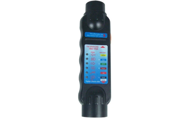 - Pulse el botón amarillo de prueba. Si el remolque está equipado con todas las funciones (intermitente, luces traseras y de freno, luz antiniebla trasera)