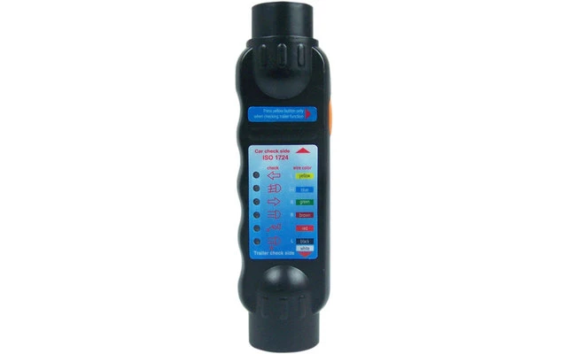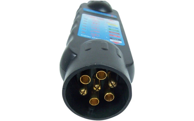 La pantalla LED muestra el color del cable defectuoso correspondiente. Comprueba todas las tomas y clavijas de 7 polos y, mediante los dos adaptadores suministrados, todas las tomas y clavijas de 13 polos en función de 7 polos