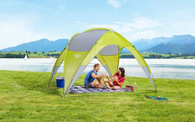 Volumen de suministro: piel de la tienda, 2 paredes laterales, postes de fibra de vidrio, cuerdas de sujeción.